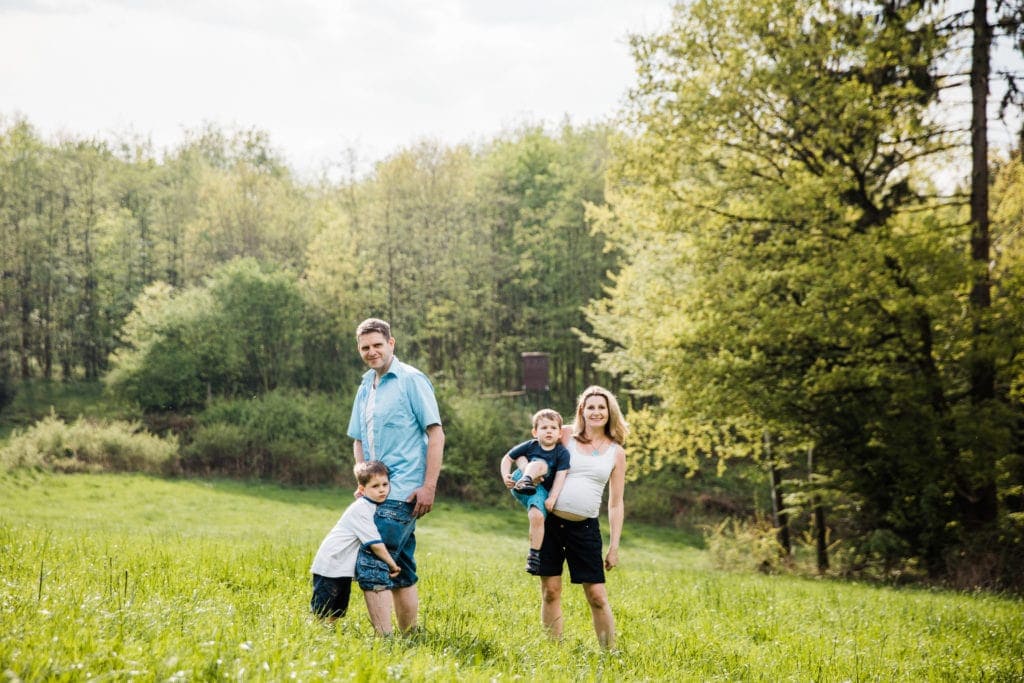 Wenn Mama und Papa schon immer gerne draußen waren, die Jungs mit wenigen Monaten ihre ersten Zeltlager erlebten und die Familie die meiste Zeit bis zur Geburt des dritten Kindes im Garten verbringt, ist irgendwie klar, dass Studiofotos vom Babybauch nicht so richtig viel Sinn machen. Raus und machen – das könnte das Lebensmotto der wuseligen Vier sein.